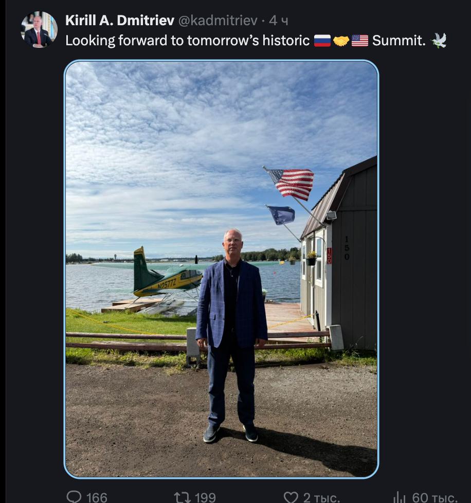 08:00 Спецпредставитель Путина Дмитриев уже прибыл на Аляску и публикует фото оттуда.