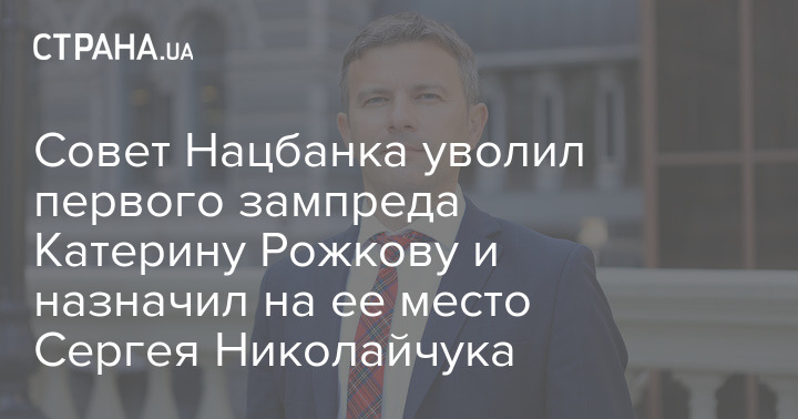 Совет Национального банка Украины сегодня принял решение об увольнении Катерины Рожковой с должности первого заместителя председателя НБУ. Одновременно на освободившееся место был назначен Сергей Николайчук, которого повысили с заместителя до первого зама главы, как ранее и прогнозировала "Страна".