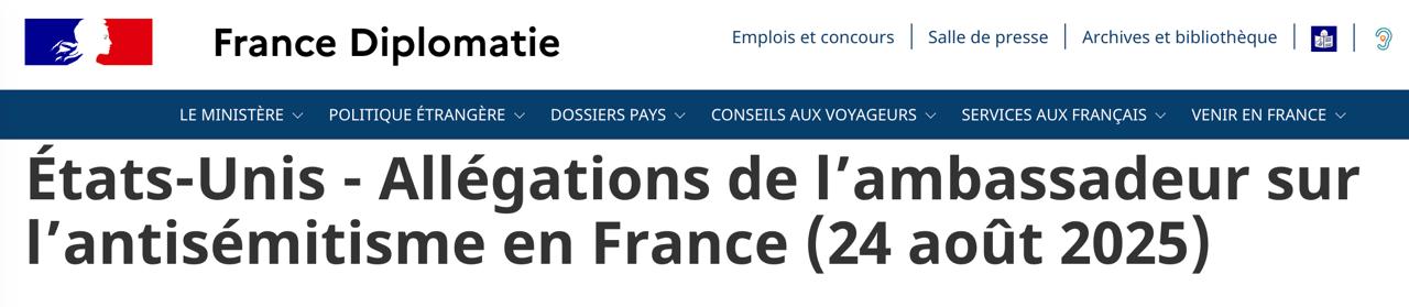 В ответ МИД Франции опубликовал заявление о том, что "принял к сведению обвинения" посла, но отрицает их. Ведомство также признало, что "рост числа антисемитских проявлений во Франции с 7 октября 2023 года — это реальность, которую мы осуждаем и против которой французские власти демонстрируют полную мобилизацию".