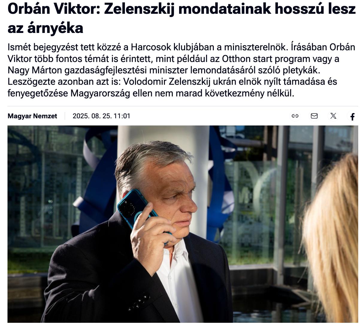 Заявление Орбана цитирует газета Magyar Nemzet