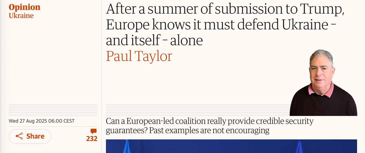 "Поскольку Путин не демонстрирует никаких признаков прекращения войны или участия в серьезных мирных переговорах, а Трамп не желает оказывать какое-либо реальное давление на Россию, способность европейцев обеспечить какое-либо прекращение огня вряд ли подвергнется испытанию. Это и к лучшему, поскольку мы все еще далеки от того, чтобы обладать реальным политическим и военным потенциалом, необходимым для сдерживания России без надежной поддержки США", - пишет Тейлор.