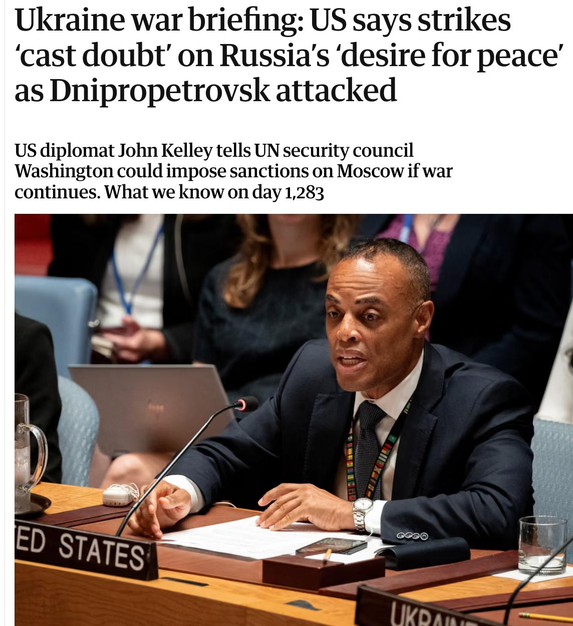 Вчера прошло инициированное Украиной заседание Совбеза ООН после массированного удара по Киеву. Представитель США Джон Келли призвал Москву "двигаться к миру и встретиться с Украиной".
