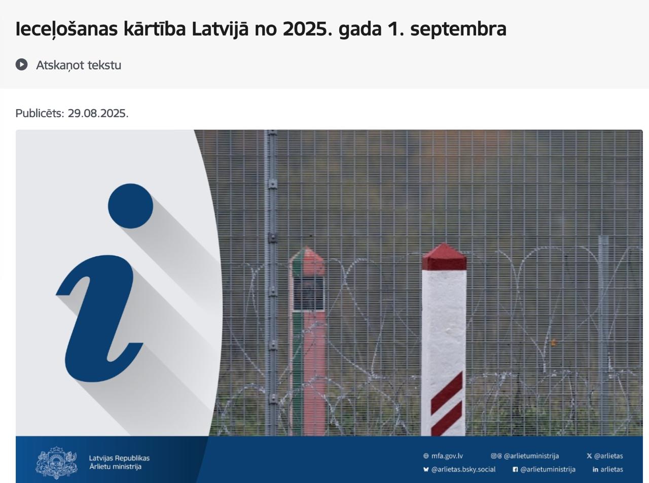 С 1 сентября 2025 года при въезде в Латвию нужно будет заранее подавать сведения о себе и цели поездки через систему eta.gov.lv. Это касается и украинцев.