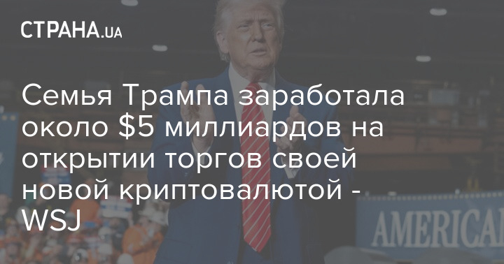 Семья Трампа заработала около $5 миллиардов на открытии торгов своей новой криптовалютой - WSJ