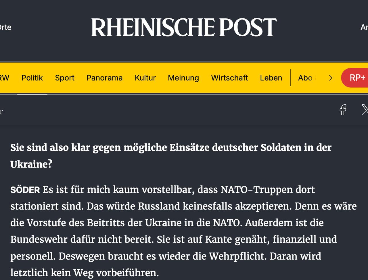 "Мне трудно представить, что там (в Украине - Ред.) дислоцируются войска НАТО. Россия с этим не согласится ни при каких обстоятельствах. Потому что это стало бы предвестником вступления Украины в НАТО. Кроме того, Бундесвер к этому не готов", - добавил Зёдер.