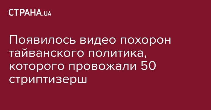 Семья умершего тайванского общественного деятеля Тунга Сыана организовала ему похороны в сопровождении пяти десятков стриптизерш. Отметим, что болезнь, послужившая причиной смерти политика, не разглашается.