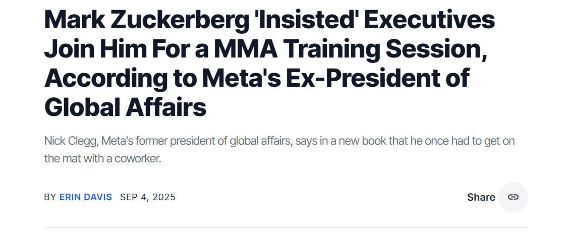 Миллиардер и владелец корпорации Meta (Facebook и Instagramm) Марк Цукерберг дерется с топ-менеджерами своей компании в боях MMA. Об этом в своей книге рассказал бывший президент международного отделения Meta Ник Клегг.