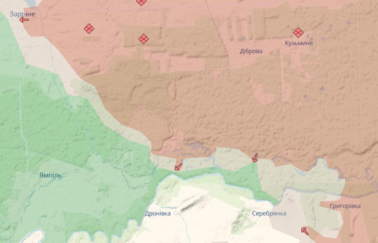 Также россияне, пытаясь полностью вытеснить ВСУ из этого леса, уже закрепляются между Григоровкой и Серебрянкой. Их сдерживает болотистая местность, но россияне применяют тяжелую технику.
