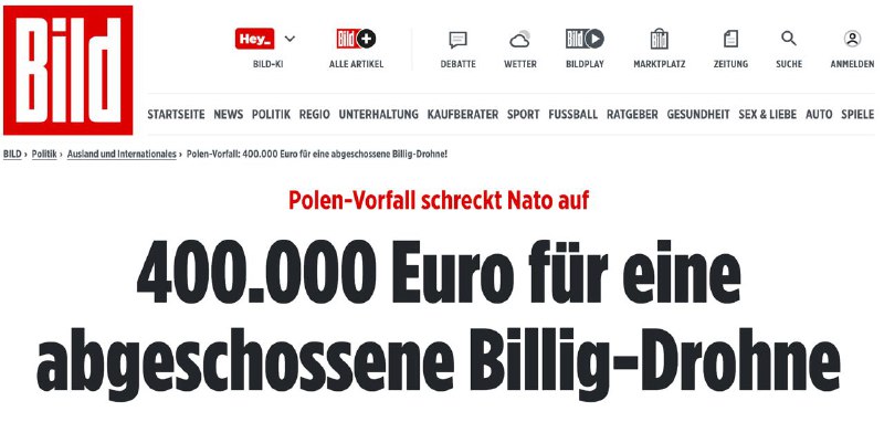 Bild пишет, что у Германии на данный момент нет достаточных ресурсов для эффективной борьбы с беспилотниками, летающими на малых высотах.