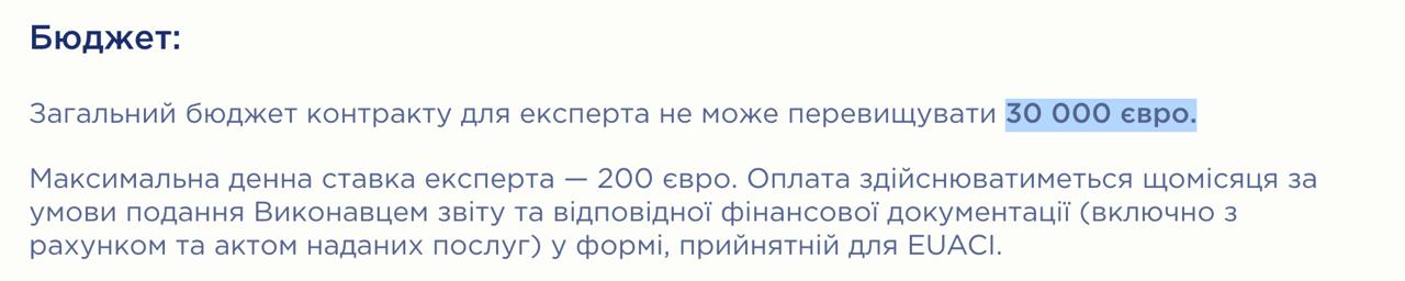 За контракт на полгода потенциальному советнику предлагают 30 тысяч евро. Максимальная дневная ставка составляет 200 евро.