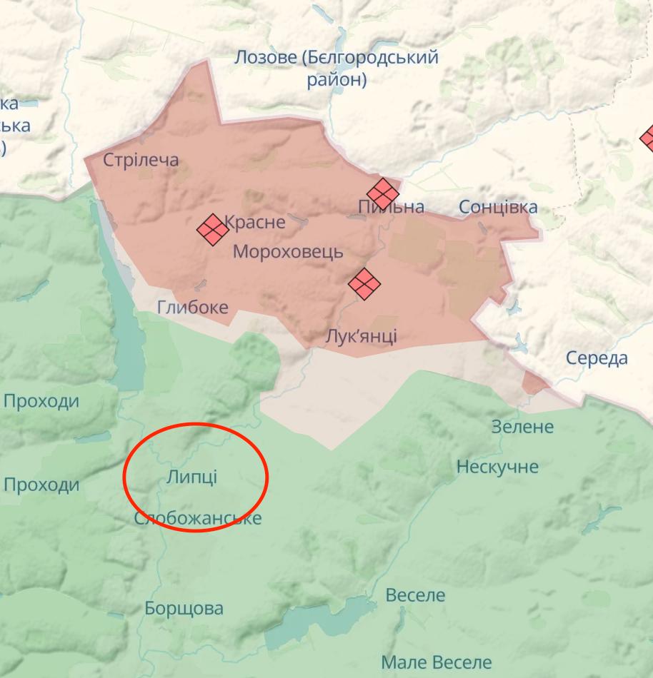 Также россияне продвинулись к северу от Купянска - в Кондрашовке, сообщает Deep State.