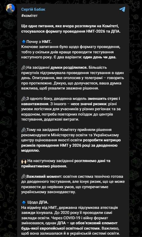 Глава комитета Верховной Рады по вопросам образования Сергей Бабак опроверг информацию о том, что вместо Государственной итоговой аттестации (ГИА - рус., ДПА - укр.) в 4 классе школьники будут сдавать другой тест в формате внешнего независимого оценивания (ВНО).