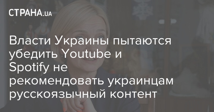 Власти Украины пытаются договориться с видеохостингом Youtube и музыкальным стриминговым сервисом Spotify, чтобы те не рекомендовали украинским пользователям русскоязычный контент.