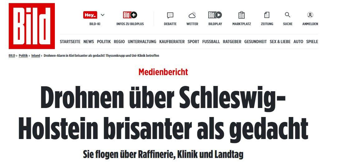 Так, в земле Шлезвиг-Гольштейн, что на севере страны, подозрительные БпЛА видели над стратегическими объектами. В ночь на 26 сентября несколько беспилотников пролетели над верфью в Киле, университетской клиникой города, электростанцией, местным парламентом и нефтеперерабатывающим заводом, который снабжает топливом аэропорт Гамбурга. В земле Мекленбург–Передняя Померания, в Занице и Ростоке, дроны пролетали над военными объектами, причем в порту Ростока несколько крупных квадрокоптеров массой более 2,5 кг летали, как заявили в полиции, "координированно".