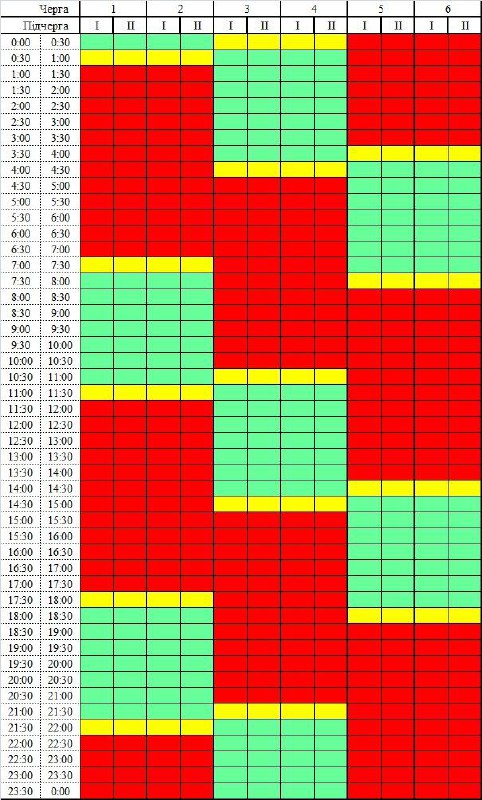 Свет дают на три часа через шесть.