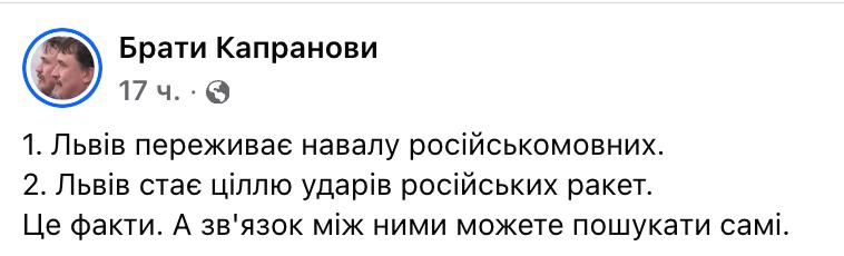 Пост Капранова вызвал волну негодования. Фото: facebook.com/KapranovyBraty