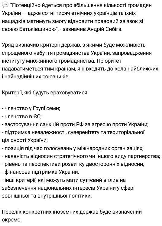 Правительство Украины одобрило постановление о критериях стран, граждане которых смогут упрощенно получать украинское гражданство.
