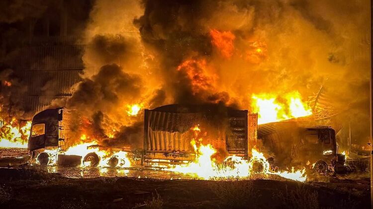 Видео и фото последствий обстрела опубликовала Государственная служба по чрезвычайным ситуациям.