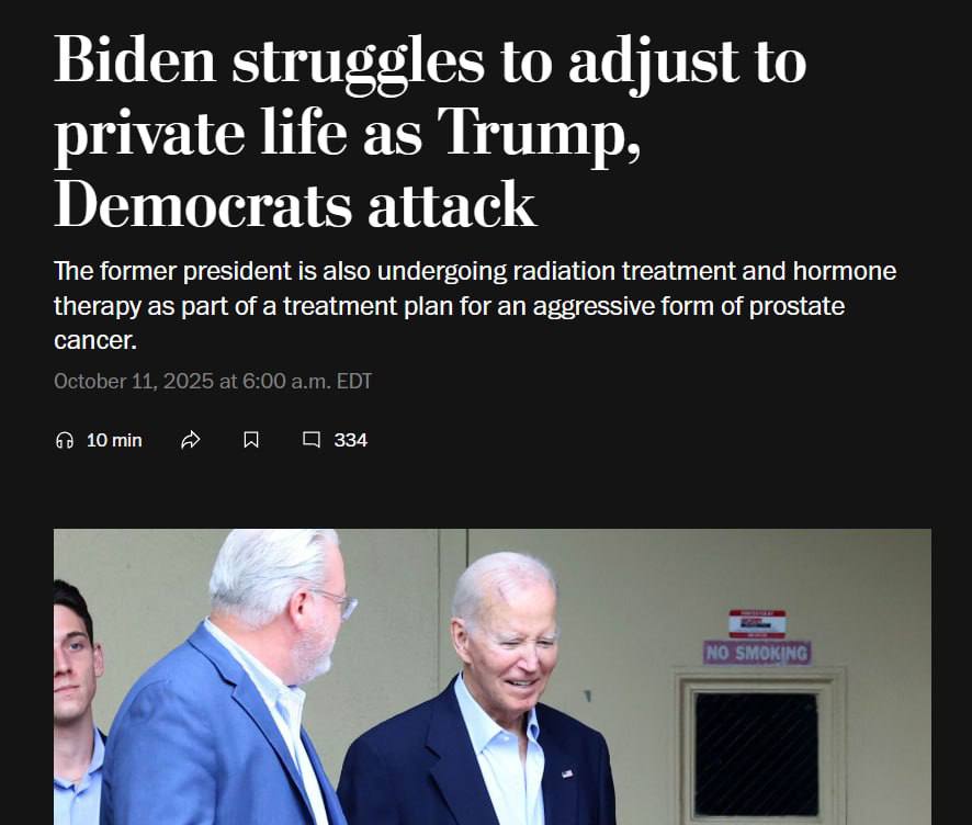 "Исследователи утверждают, что постпрезидентский опыт Байдена беспрецедентен не только из-за нападок Трампа, но и из-за многих демократов, обвиняющих его в сокрушительном поражении на выборах. Книги, подробно описывающие, как помощники Байдена пытались скрыть его слабость, лишь усугубили картину упадка, омрачившую его жизнь после ухода из Белого дома", - пишет издание.