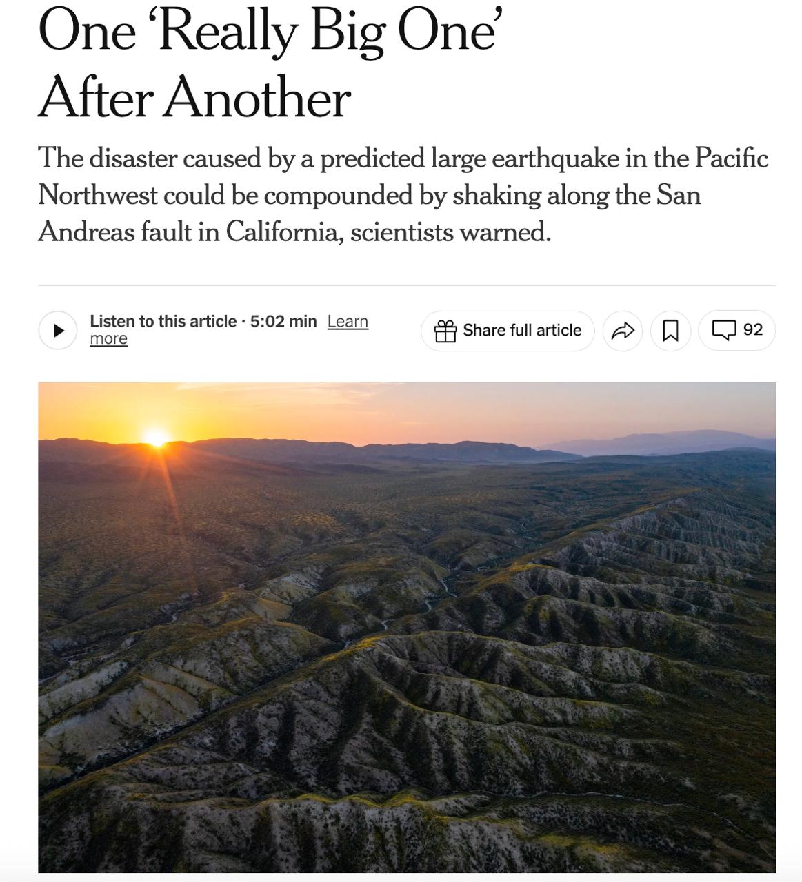 Тем не менее Джонс признает, что связь между двумя разломами выглядит логичной. По ее словам, сильное землетрясение в одном месте действительно может повлиять на соседние зоны.