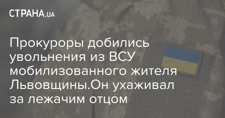 Прокуратура добилась увольнения из Вооруженных сил Украины незаконно мобилизованного жителя Львовской области, который был единственным опекуном отца-инвалида.