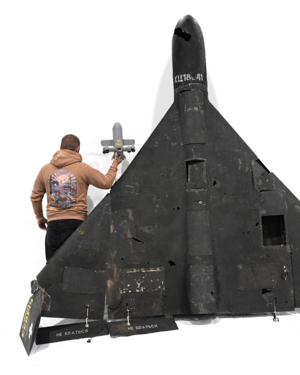 15:23 В ВСУ показали сравнение габаритов "Шахеда" и украинского дрона-перехватчика "Стинг".