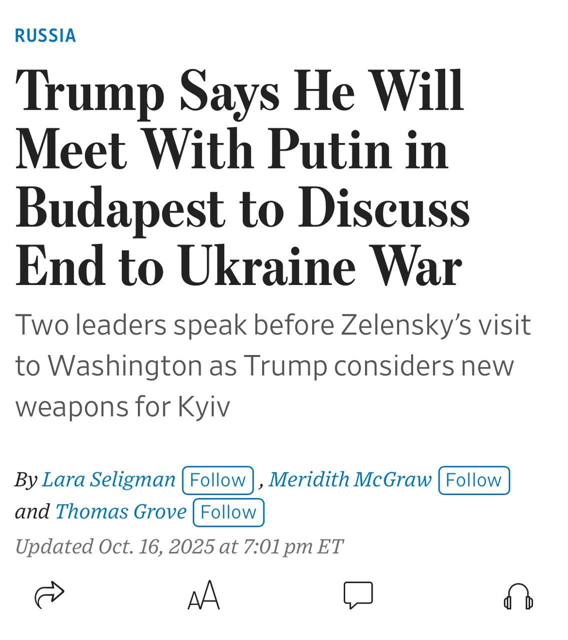 Перед саммитом Трампа и Путина в Венгрии США хотят больше встреч на низком уровне, чем перед Аляской - WSJ