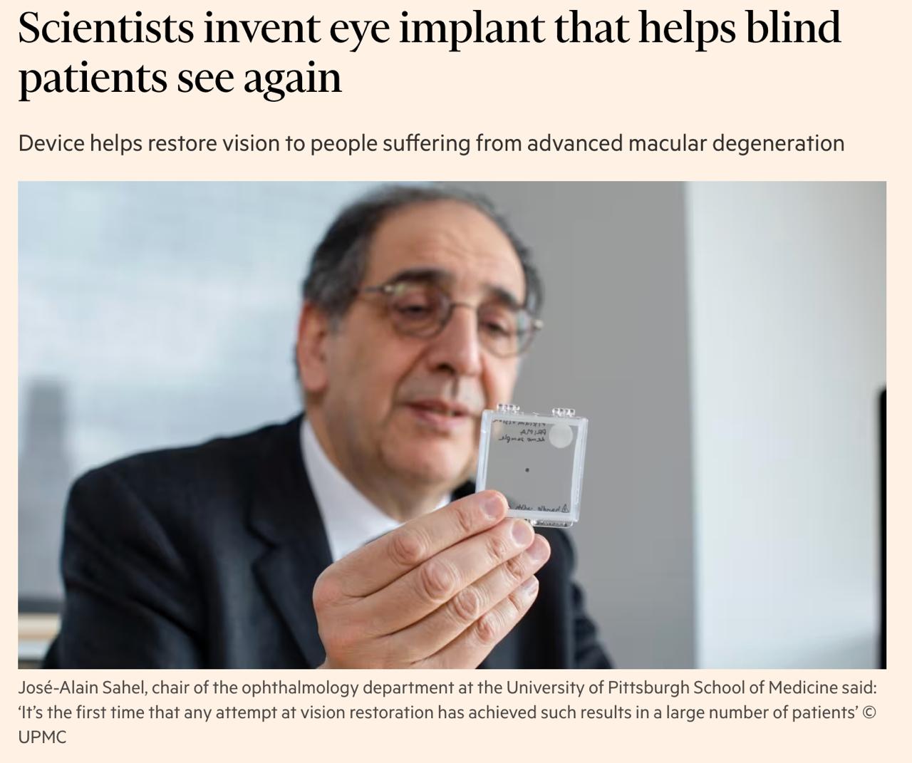 Учёные изобрели глазной имплантат, который поможет слепым пациентам частично восстановить зрение. Пациенты с географической атрофией смогут снова читать.