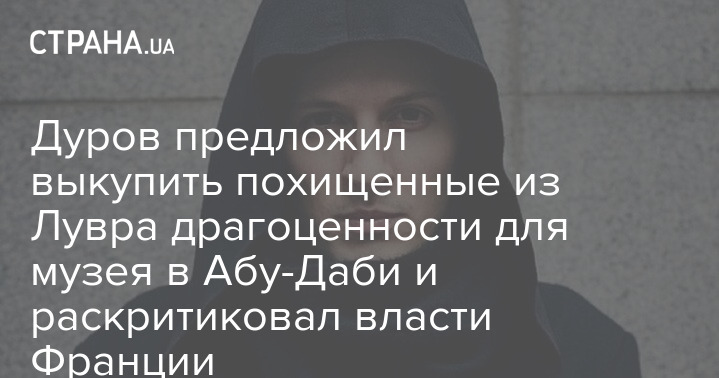 Основатель Telegram Павел Дуров заявил, что выкупит похищенные из Лувра сокровища для передачи их в аналогичный музей в Абу-Даби.