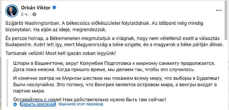 Орбан написал о подготовке саммита в Будапеште. Фото: facebook.com/orbanviktor