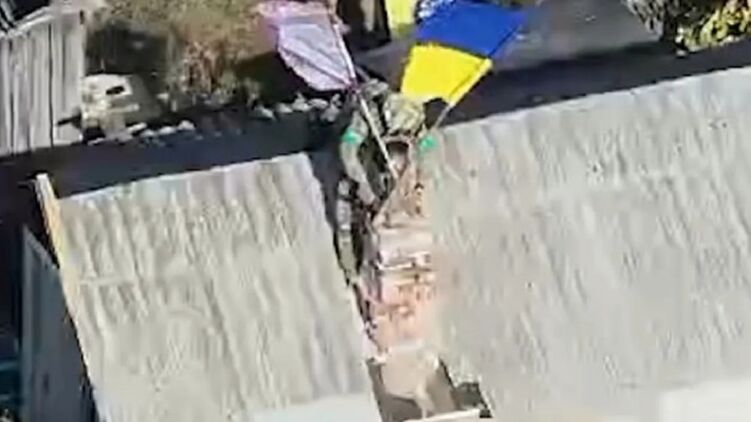Украинские десантники установили флаг в Сухецком. Фото: 82 отдельная десантно-штурмовая бригада
