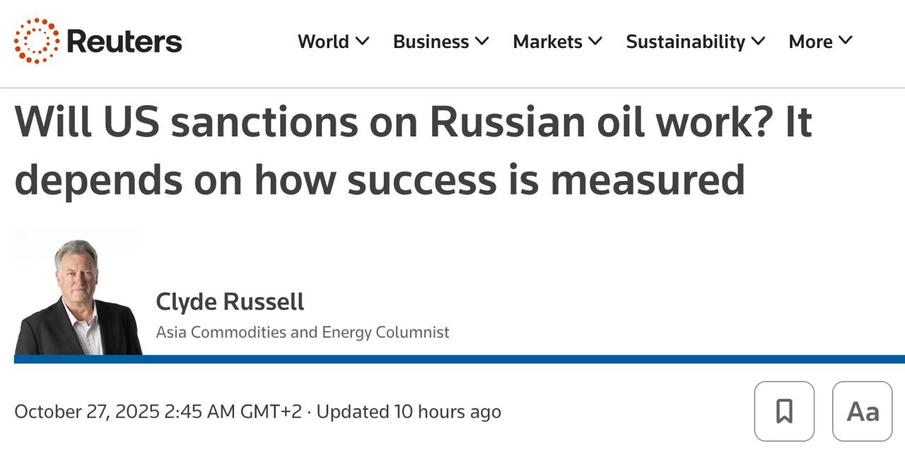 По мнению многих участников нефтяного рынка, западные санкции почти не влияют на российский экспорт нефти. Поставки продолжают идти за счет обходных схем, поэтому новые ограничения провоцируют лишь кратковременный рост цен, который затем быстро исчезает на фоне стабильных потоков сырья, отмечает Reuters.