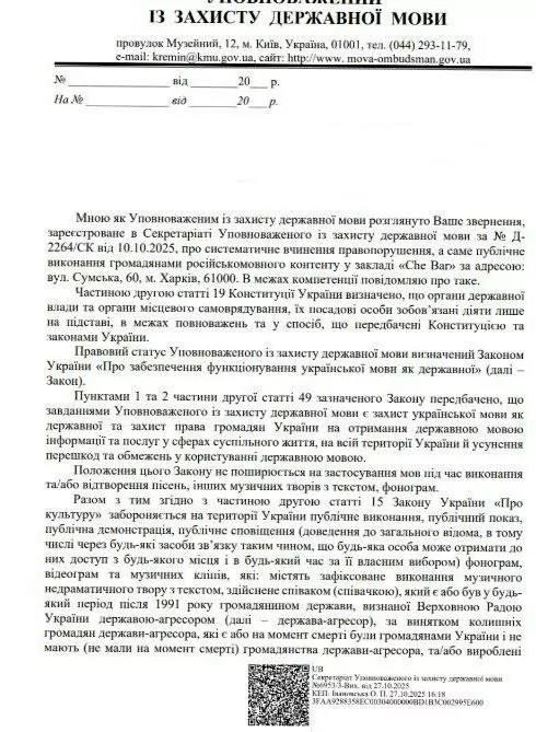 Уполномоченная по защите государственного языка Елена Ивановская призвала полицию провести "профилактически-разъяснительную работу" в заведении Che Bar, что на улице Сумской в центре Харькова, где посетители регулярно поют русскоязычные песни.
