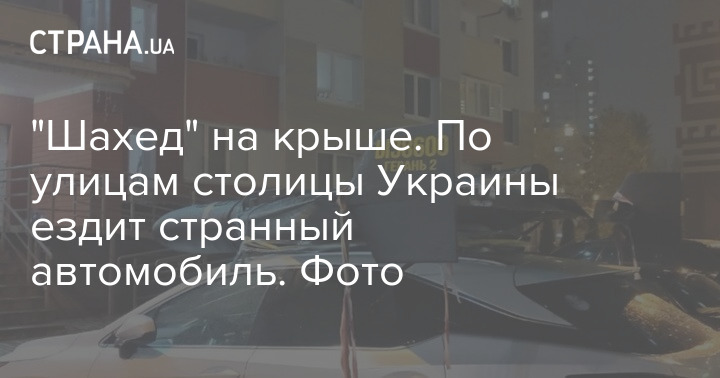 В столице Украины заметили автомобиль, к крыше которого привязан российский дрон-камикадзе.