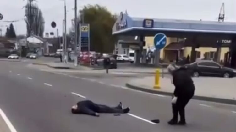 Уезжая, машина дважды сбила одного из гражданских, который пытался её остановить. В первый раз скорость автомобиля была небольшая и мужчина продолжил блокировать транспортное средство. Во второй раз гражданский уже бежал перед капотом и после падения остался неподвижно лежать на проезжей части.