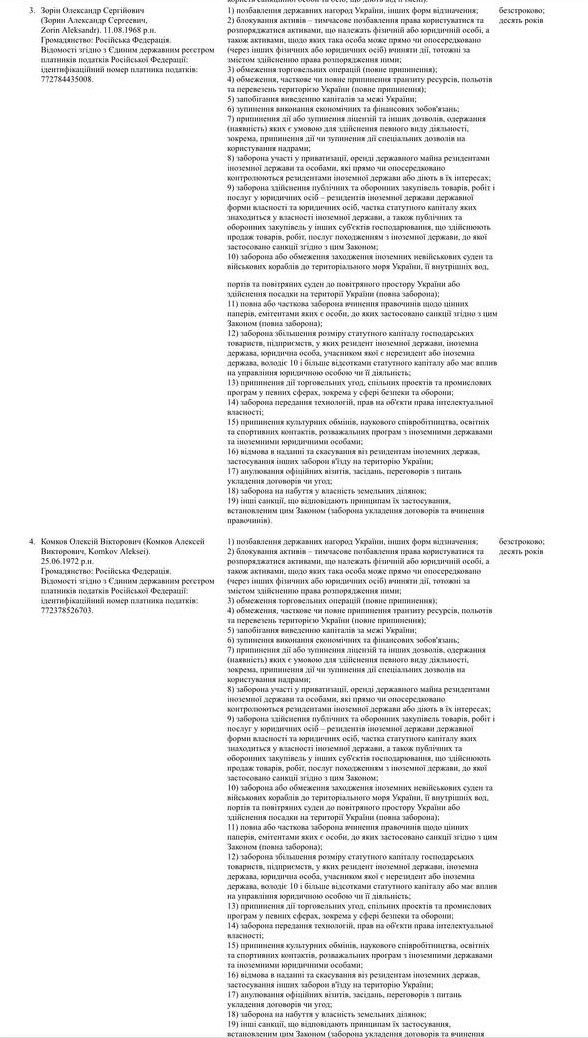 Из документа следует, что санкции также затронули нового начальника пятой службы ФСБ (она занимается, в том числе, и Украиной) Алексея Комкова.