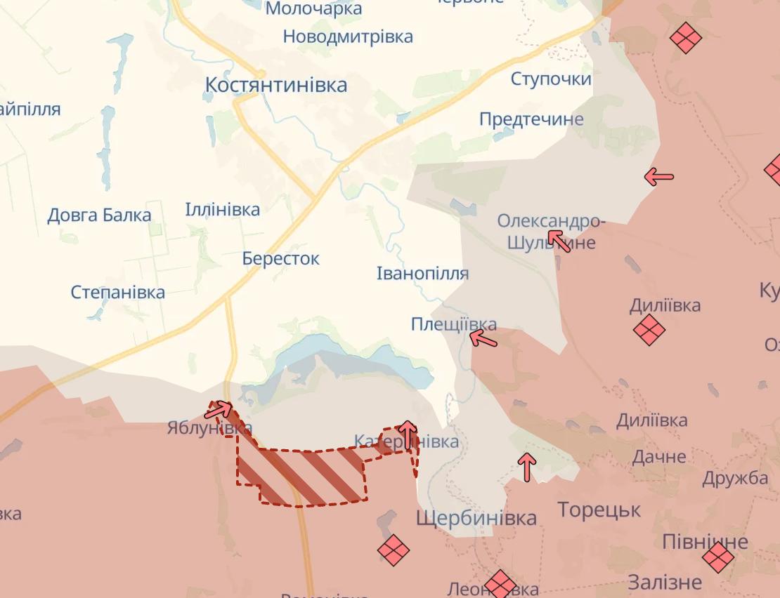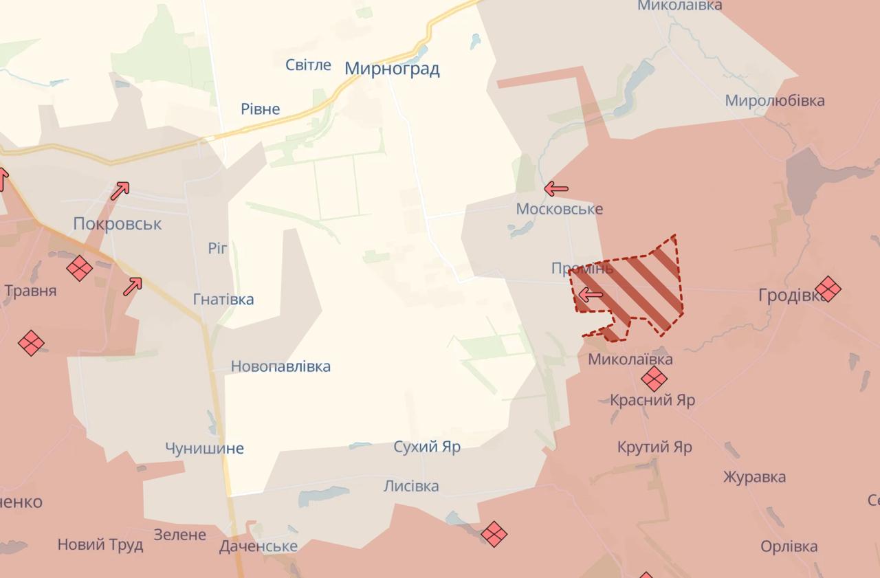 Также россияне продвинулись южнее Мирнограда и Константиновки.