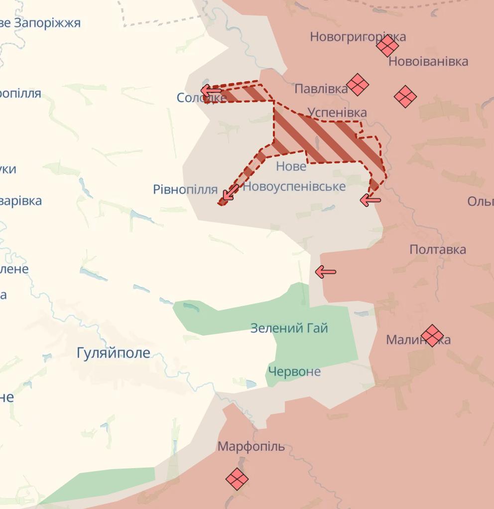 11.50 Армия РФ существенно продвинулась на востоке Запорожской области, захватив Новониколаевку и выйдя к Ровнополью, сообщает Deep State.
