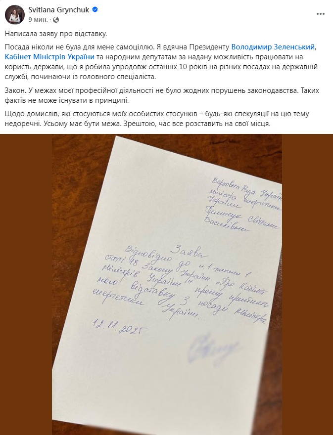 Гринчук увольняется с должности. Фото: facebook.com/s.grynchuk