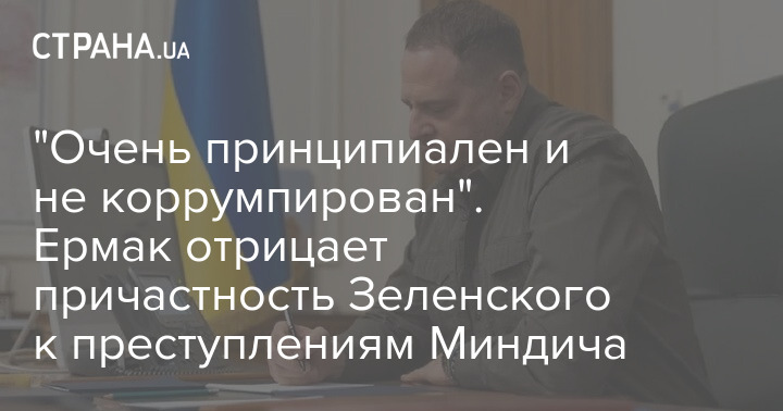 "Очень принципиален и не коррумпирован". Ермак отрицает причастность Зеленского к преступлениям Миндича