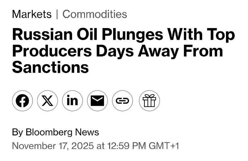 На прошлой неделе стоимость российской нефти марки Urals упала до самого низкого уровня за последние два с половиной года. Причем падение цены произошло за несколько дней до вступления в силу американских санкций в отношении двух крупнейших российских нефтяных компаний "Роснефть" и "Лукойл". Ограничения начнут действовать 21 ноября.