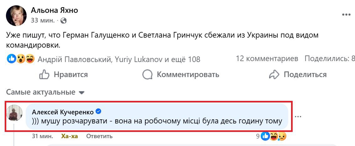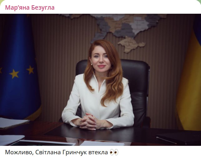 "Возможно, Светлана Гринчук сбежала", - написала нардеп под опубликованным фото министра энергетики.