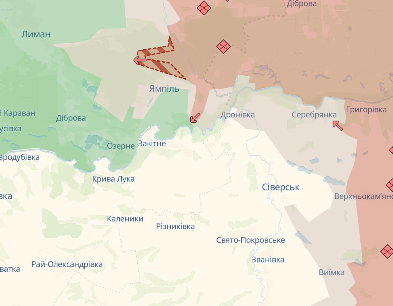 Кроме того, согласно карте Deep State, у РФ продвижение около Ямполя.