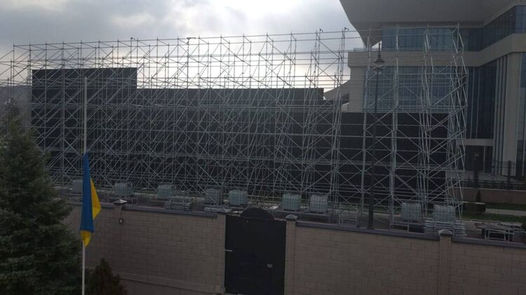 В столице Кыргызстана Бишкеке на время визита главы Кремля Владимира Путина около посольства Украины выставили огромный экран, который скрыл и посольство, и украинский флаг.