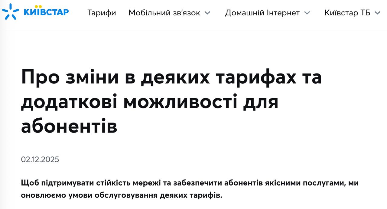 "Это решение обусловлено ростом стоимости ключевых ресурсов, в частности электроэнергии для предприятий, которая в вечерние часы пик подорожала на 60%. Из-за частых отключений электроэнергии также значительно увеличилась потребность в топливе для генераторов и логистики. В ноябре 2025 года объёмы потребления топлива выросли более чем в 7,5 раз по сравнению с летним периодом. Такие расходы являются критически важными для круглосуточного поддержания стабильности сети", - пояснили в компании.