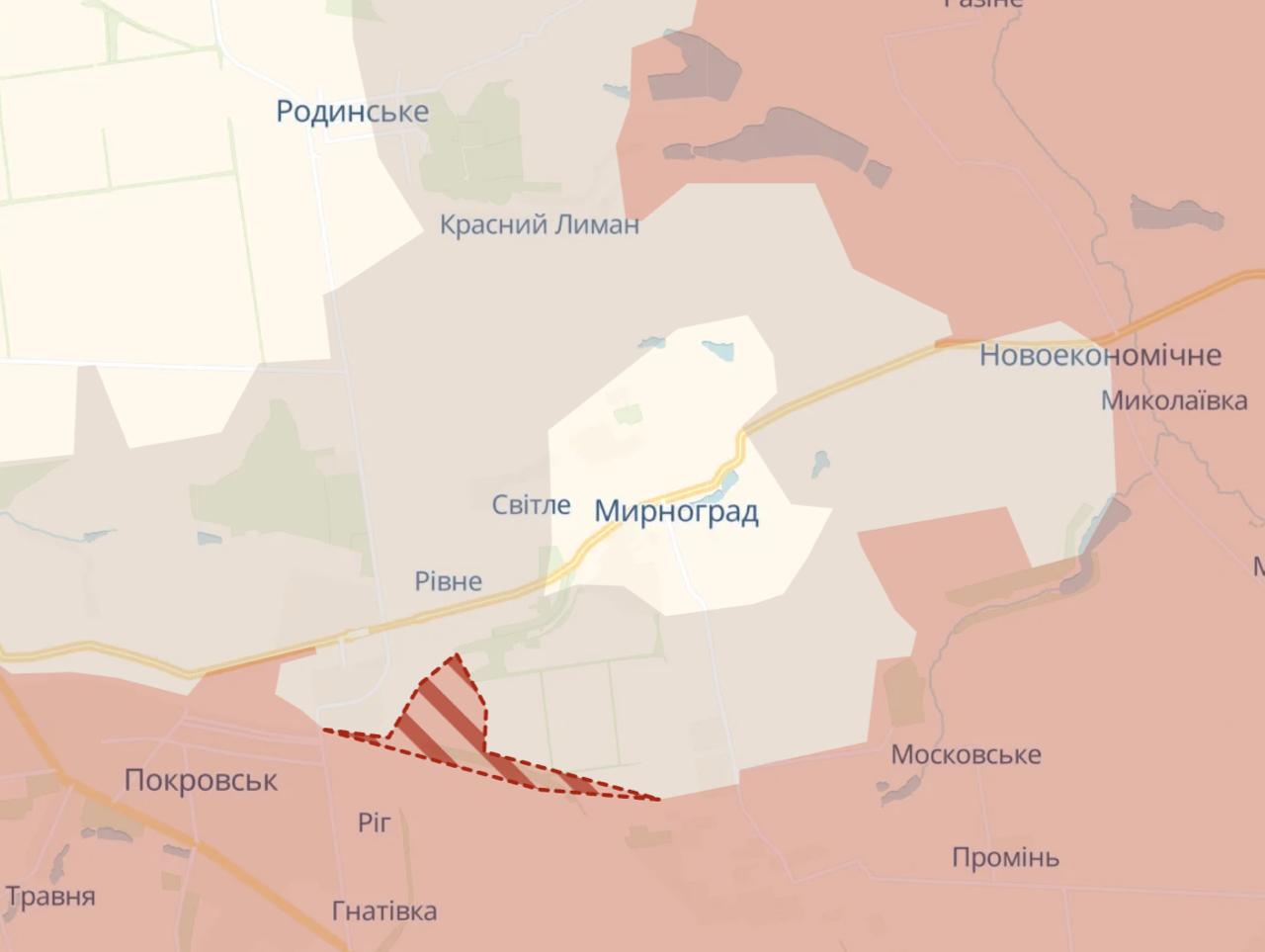 17:57 Российские войска продвинулись у Ровного под Мирноградом, а также под Северском - у Выемки. Там ликвидирован "мешок", который ранее удерживался ВСУ.