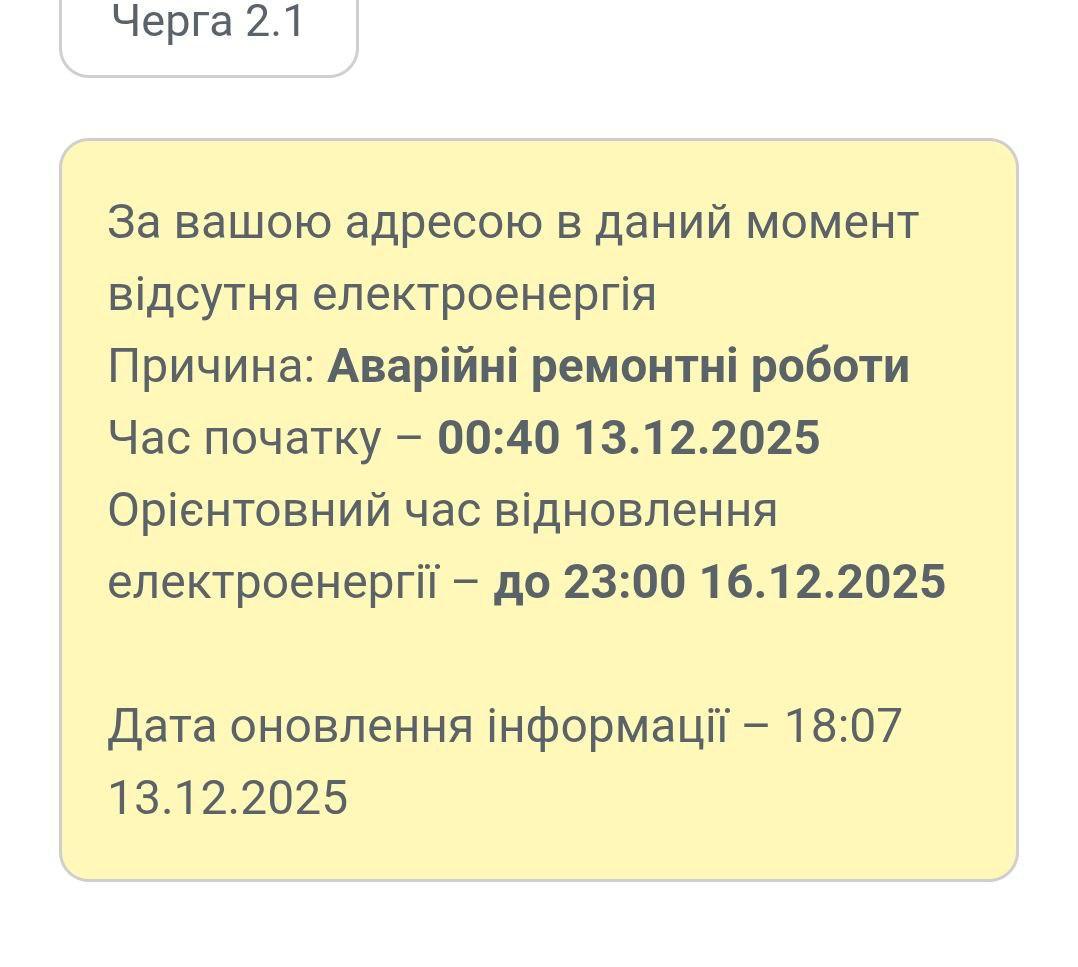 13:13 Без электроснабжения в Украине сейчас больше миллиона абонентов, сообщил глава МВД Клименко, подводя итоги ночной атаки.