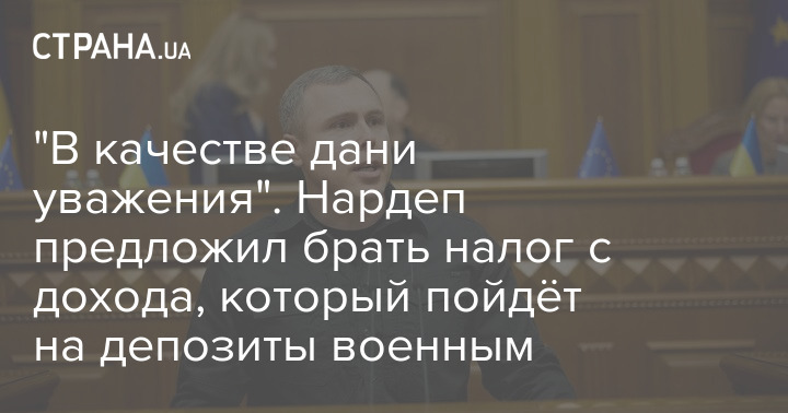 Народный депутат из фракции "Голоса" и секретарь парламентского комитета по национальной безопасности и обороне Роман Костенко предложил ввести налог с доходов граждан, который пойдет на депозиты военным.