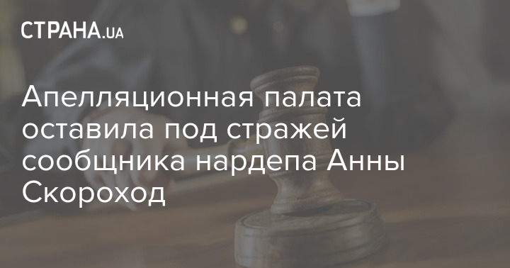 Апелляционная палата ВАКС оставила без изменений решение Высшего антикоррупционного суда о мере пресечения для "сообщника" народного депутата Анны Скороход в виде содержания под стражей с альтернативой внесения залога в 4 млн 542 тысяч грн.