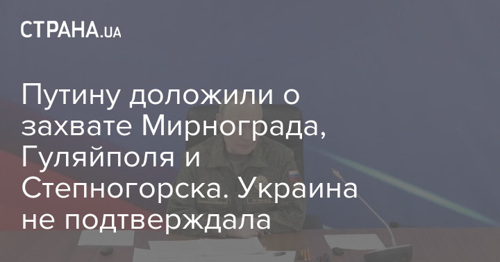 Путину доложили о захвате Мирнограда, Гуляйполя, Родинского и Степногорска. Украина не подтверждала